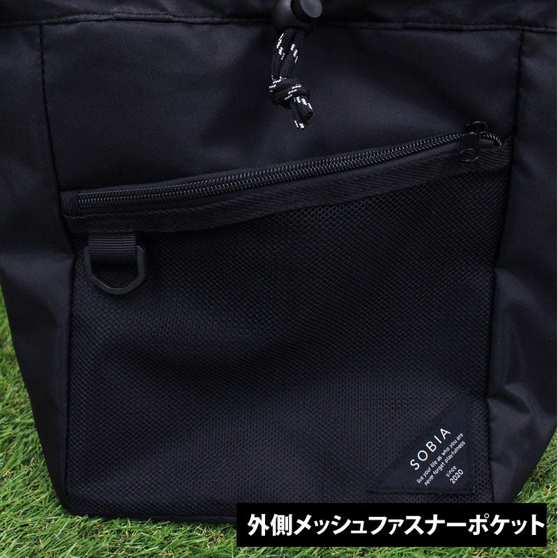 メイン収納はドローコードで絞って開閉できる巾着スタイル。