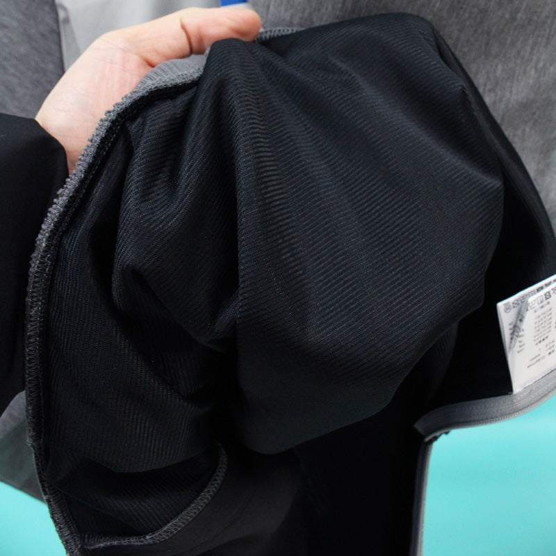 ストレッチ、軽量、撥水性など機能的な素材を使用した