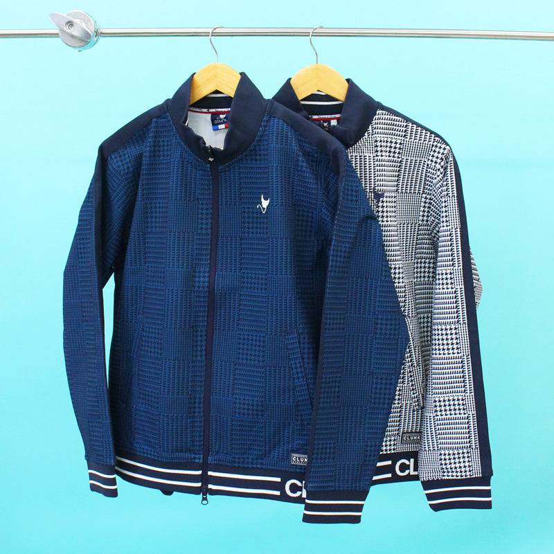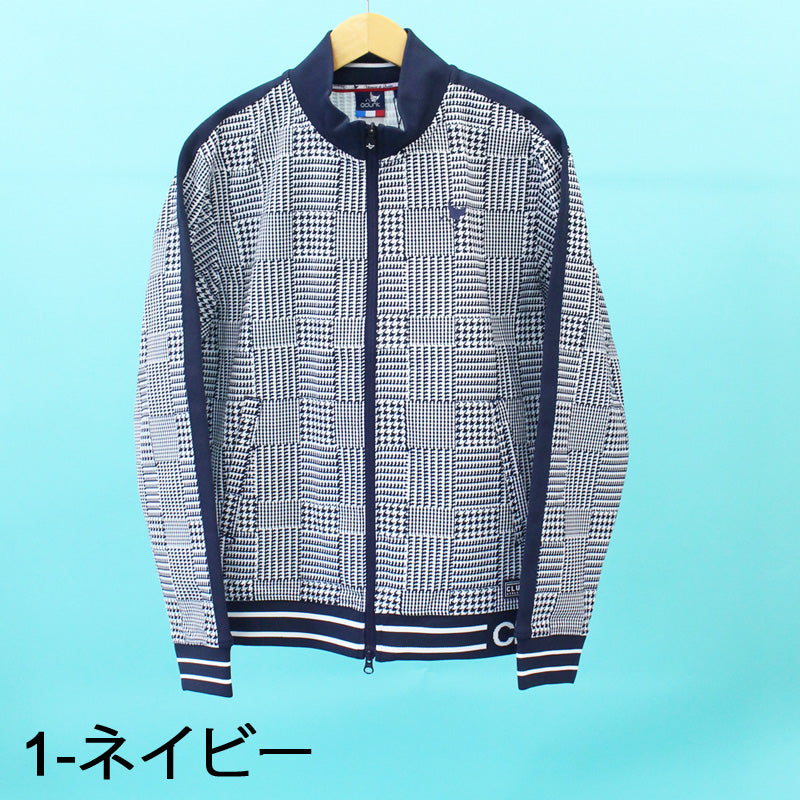 CLUNK クランク ゴルフウェア メンズ ニットジップアップブルゾン ジャケット セーター 千鳥格子 ブランド おしゃれ 秋冬