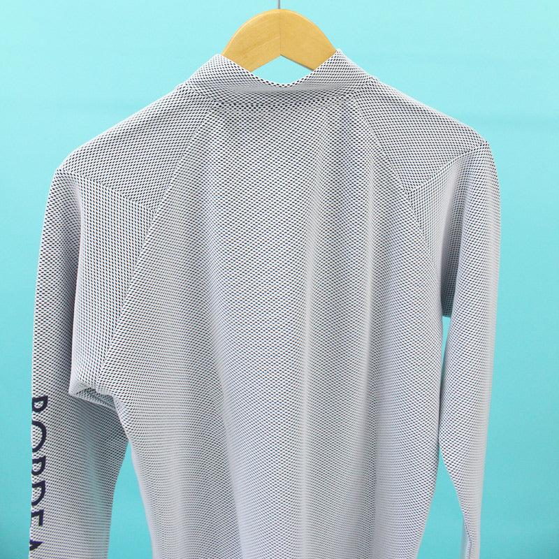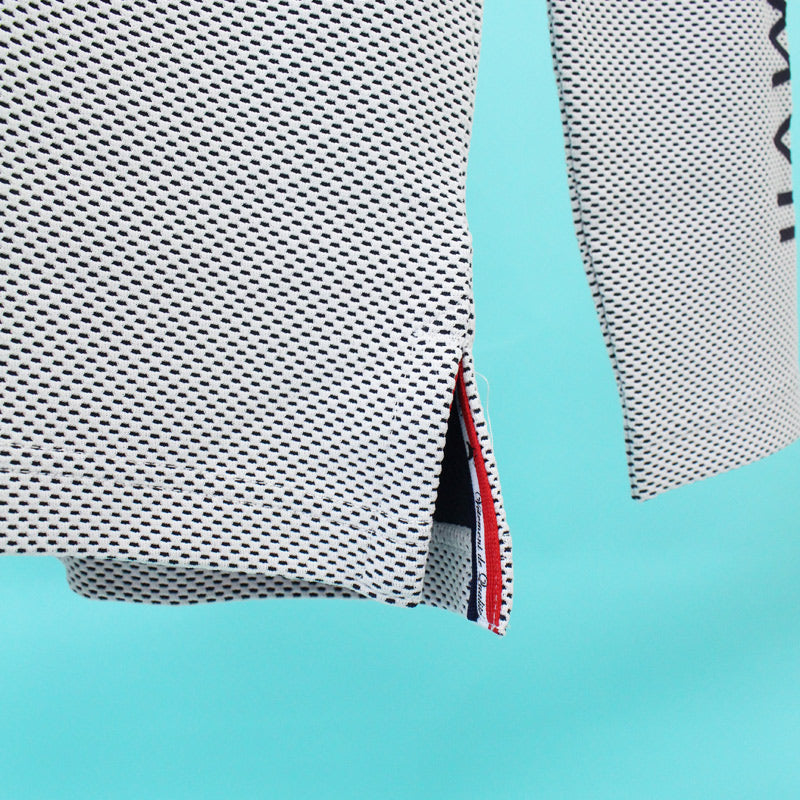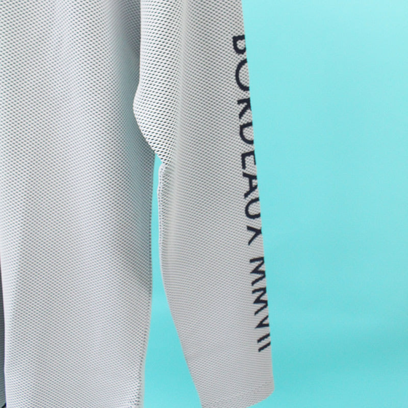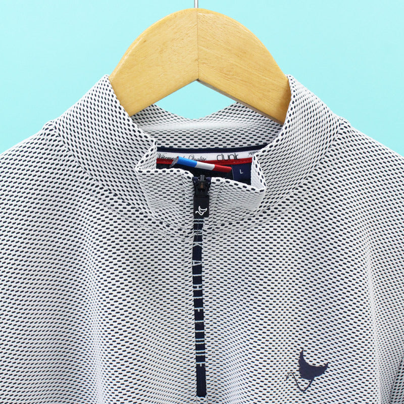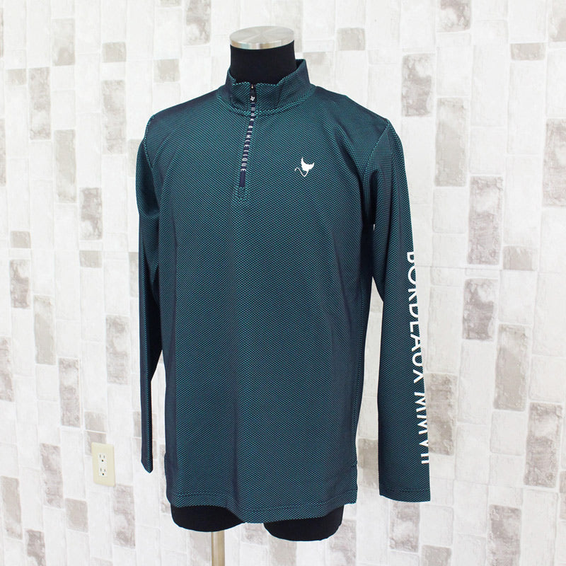 ストレッチ素材の長袖ハーフジップポロシャツ。