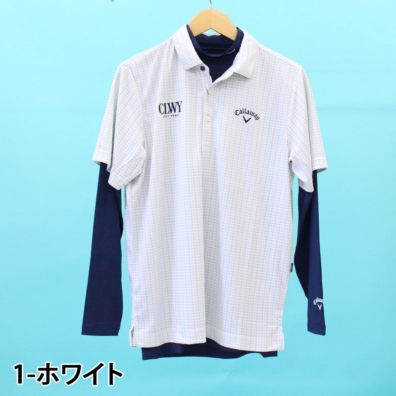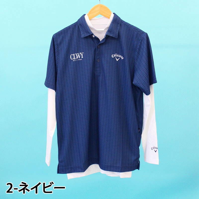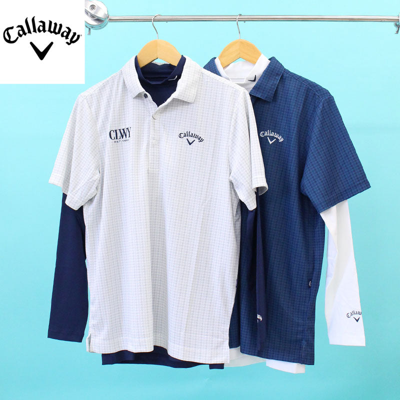 Callaway キャロウェイアパレル ゴルフウェア メンズ ポロシャツ 2点セット インナーシャツ付き 吸汗速乾 クールコア トップス 半袖 千鳥格子 総柄 ブランド おしゃれ 春夏