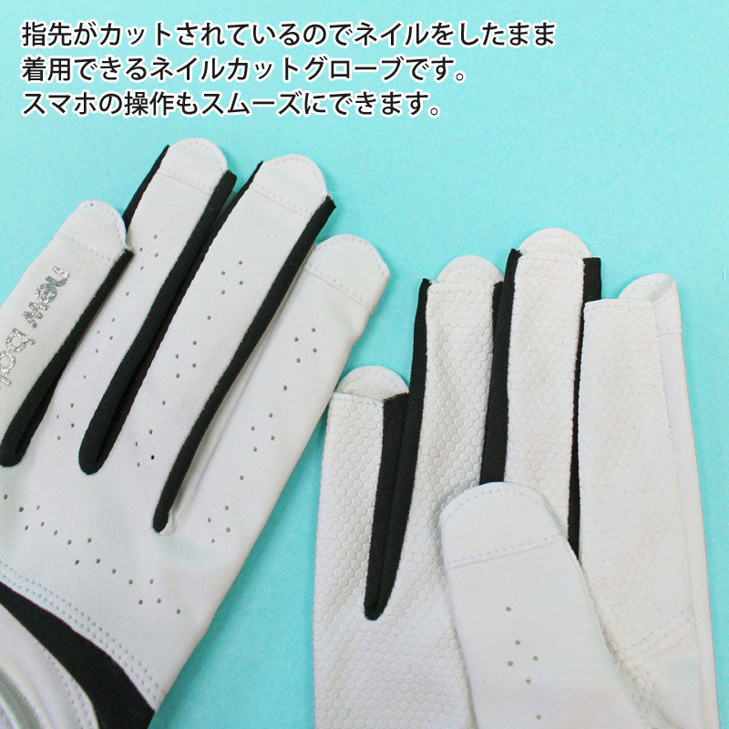 指先がカットされているのでネイルをしたまま着用できる