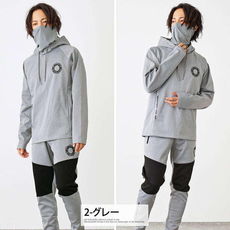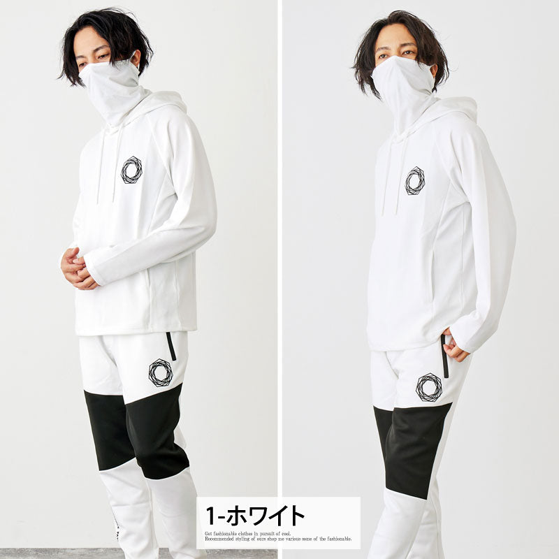 ネックにマスクを搭載したゴルフパーカーと