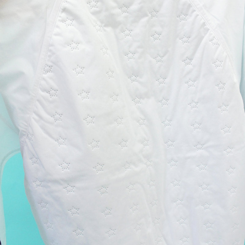薄中わたにスリットを施すことによって全部位にストレッチ性を