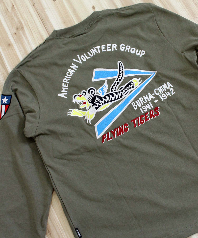 EMB FLYING TIGER L/S T-SHIRT / フライングタイガー 長袖刺繍Tシャツ / AVIREX / アヴィレックス