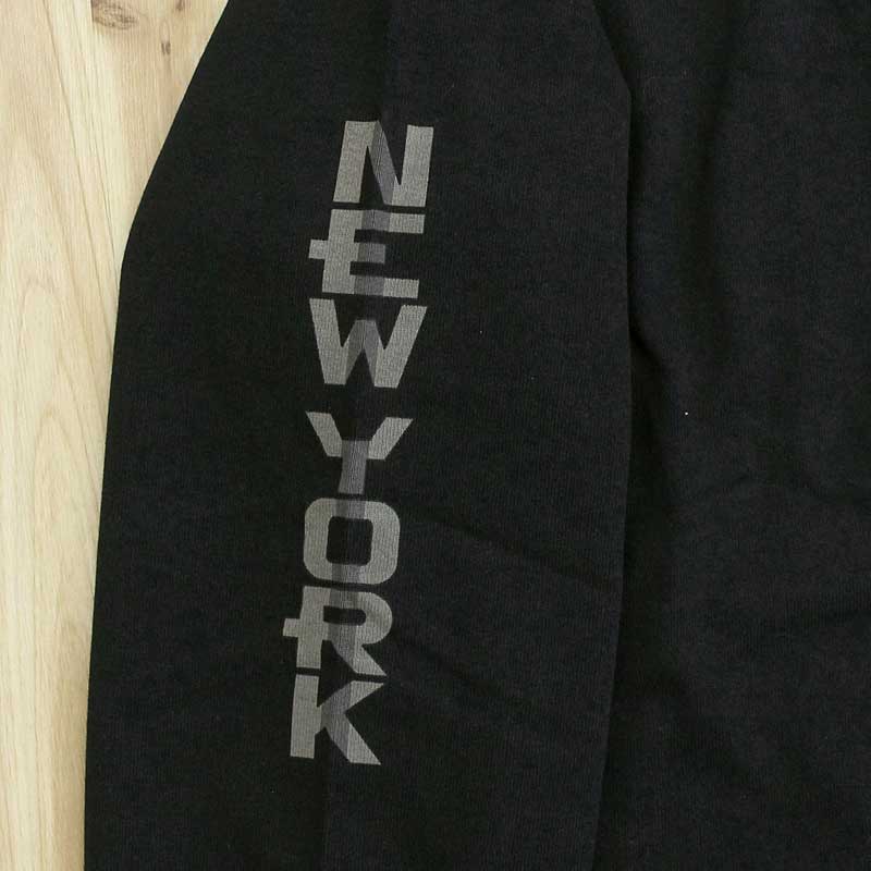 背中にブランドロゴとNEW YORKの街並みをモチーフにしたグラフィック