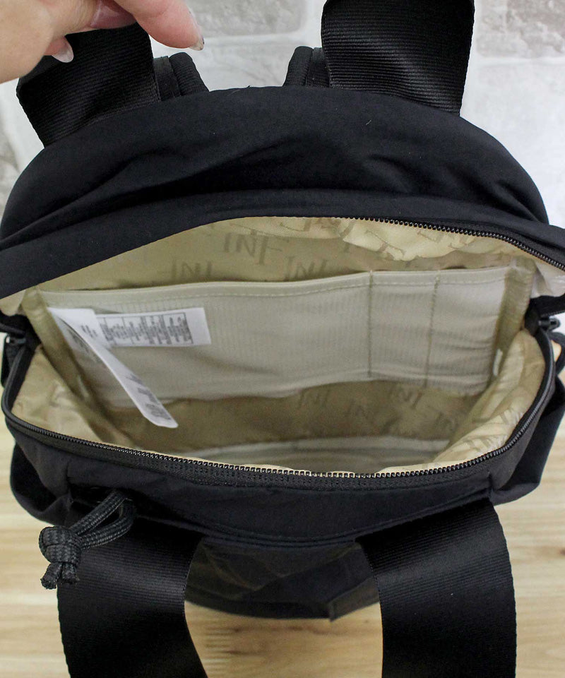 柔らかいタッチ感をもつ160デニールのリサイクルナイロンを使用した、シンプルでクリーンな印象のミニバックパックです。