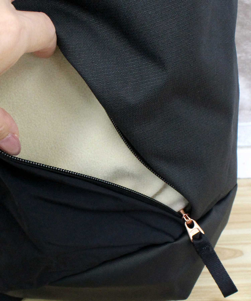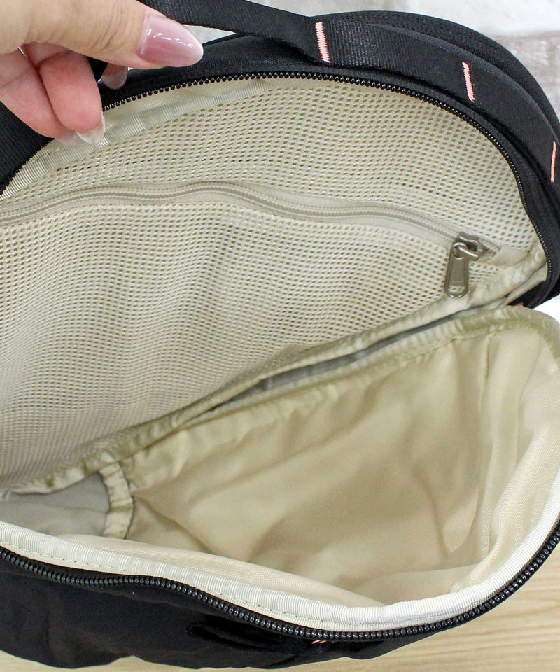 内側にジッパーポケットがあり収納物の小分けに便利。