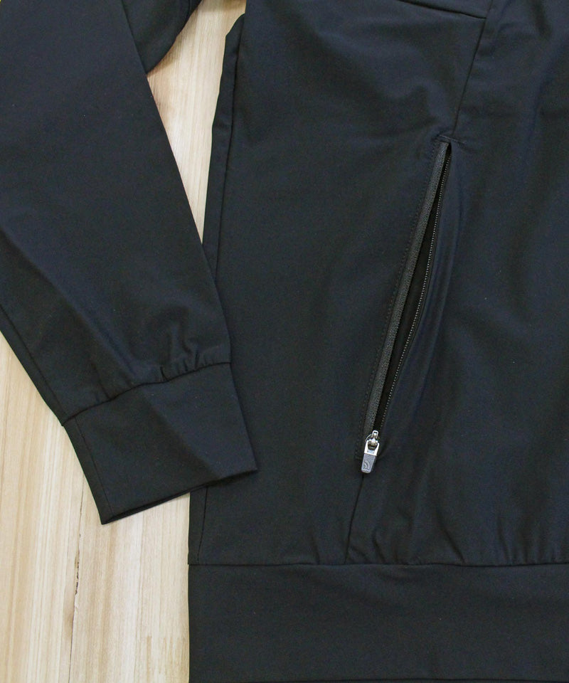 ストレッチの効いた素材に着脱が容易なフロントジッパー仕様で快適な着用感。