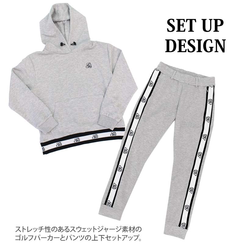 ゴルフプルパーカーとゴルフパンツの上下セットアップ。