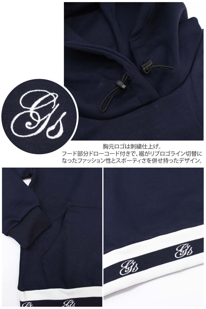 胸元ロゴは刺繍仕上げ。
