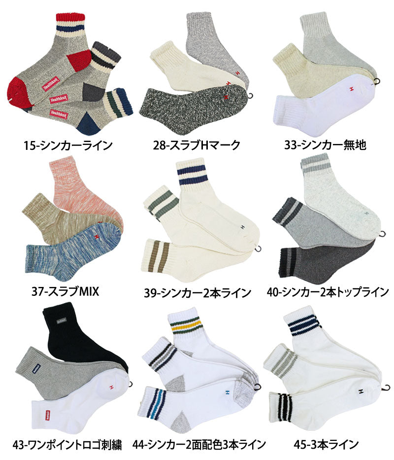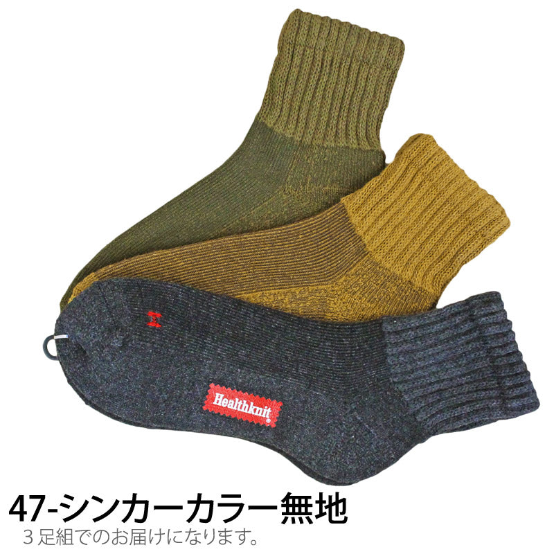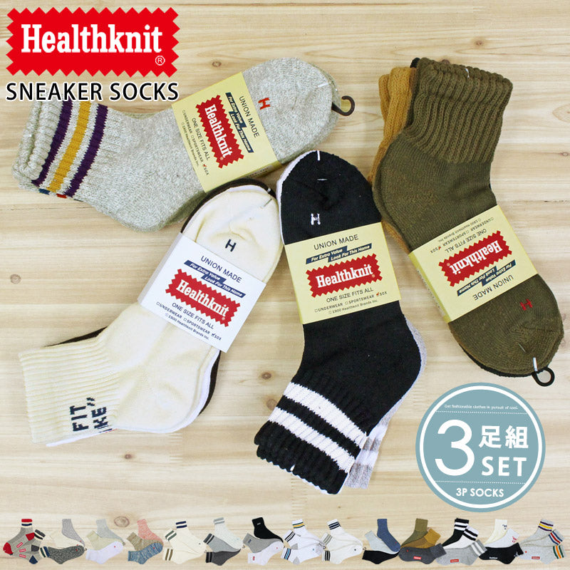 カジュアルコーディネートの足元にかかせない3足セットのお得なHealthknitのクォーター丈ショートソックスです。