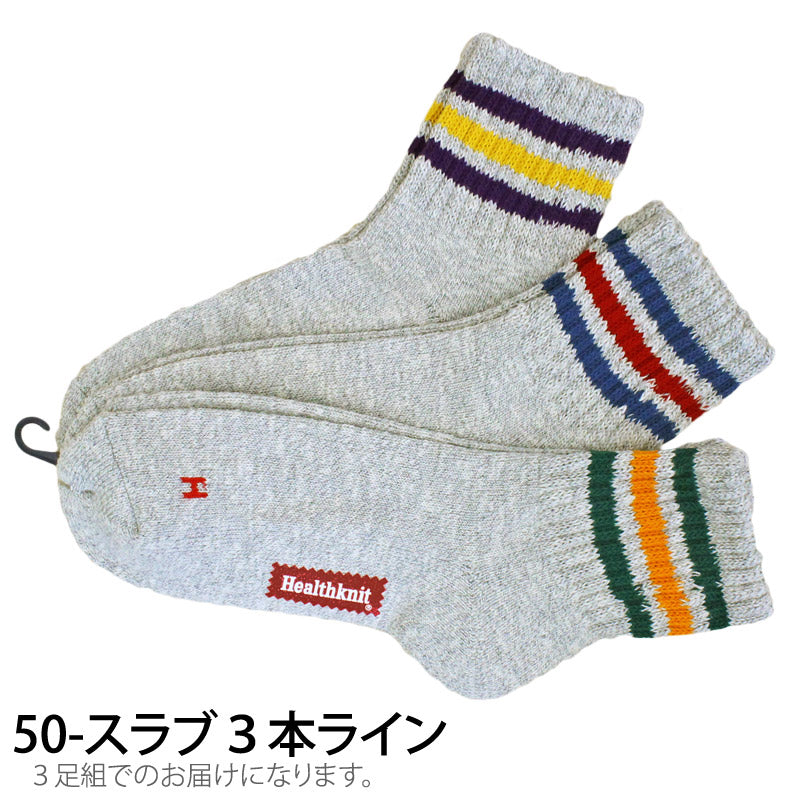 メンズショートソックス Healthknit ヘルスニット メンズ靴下 3足セット ジャガード スラブ ボーダー ライン入りスニーカーソックス クォーターソックス