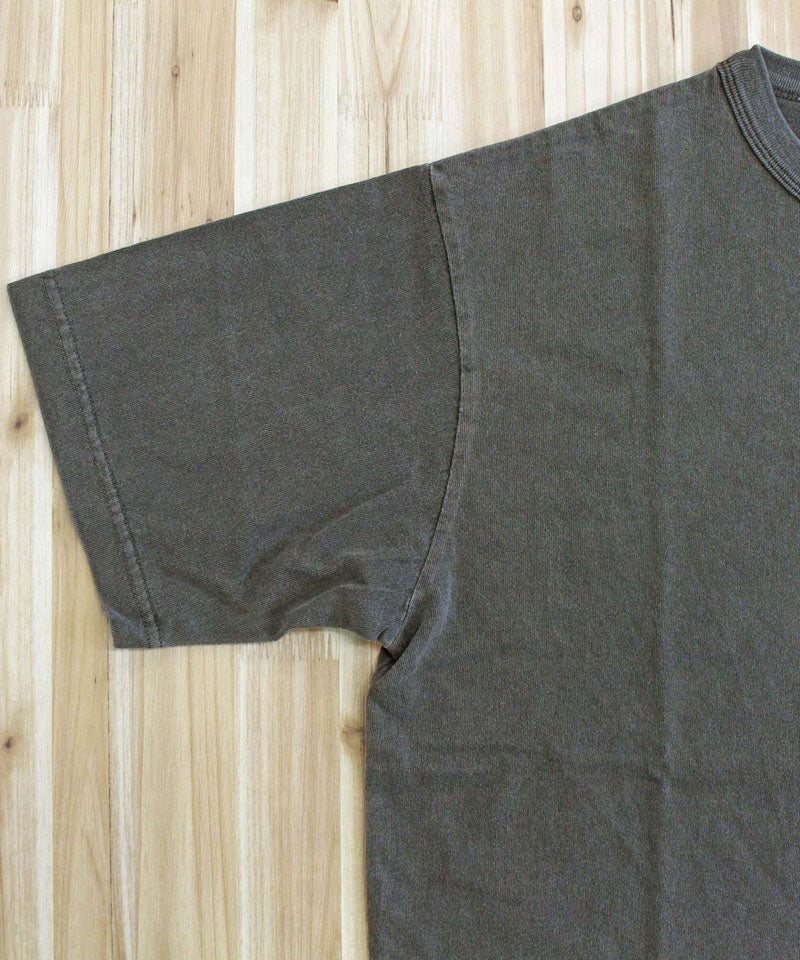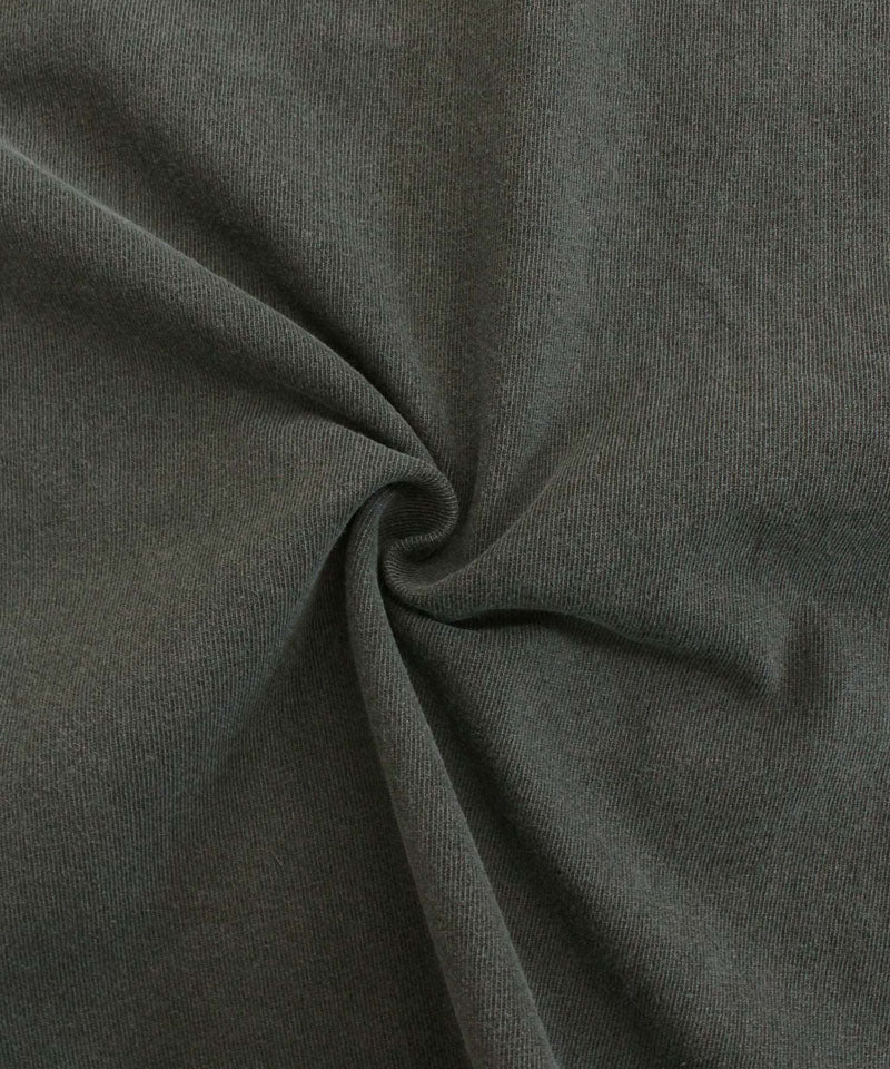 7ozのしっかりとした肉厚ボディを採用し、オープンエンド糸ならではのふっくらとしたボリューム感と、ドライでザックリとした硬めの風合いが特徴。