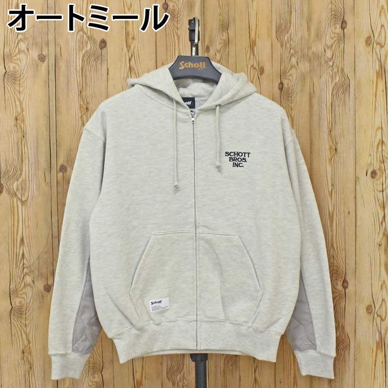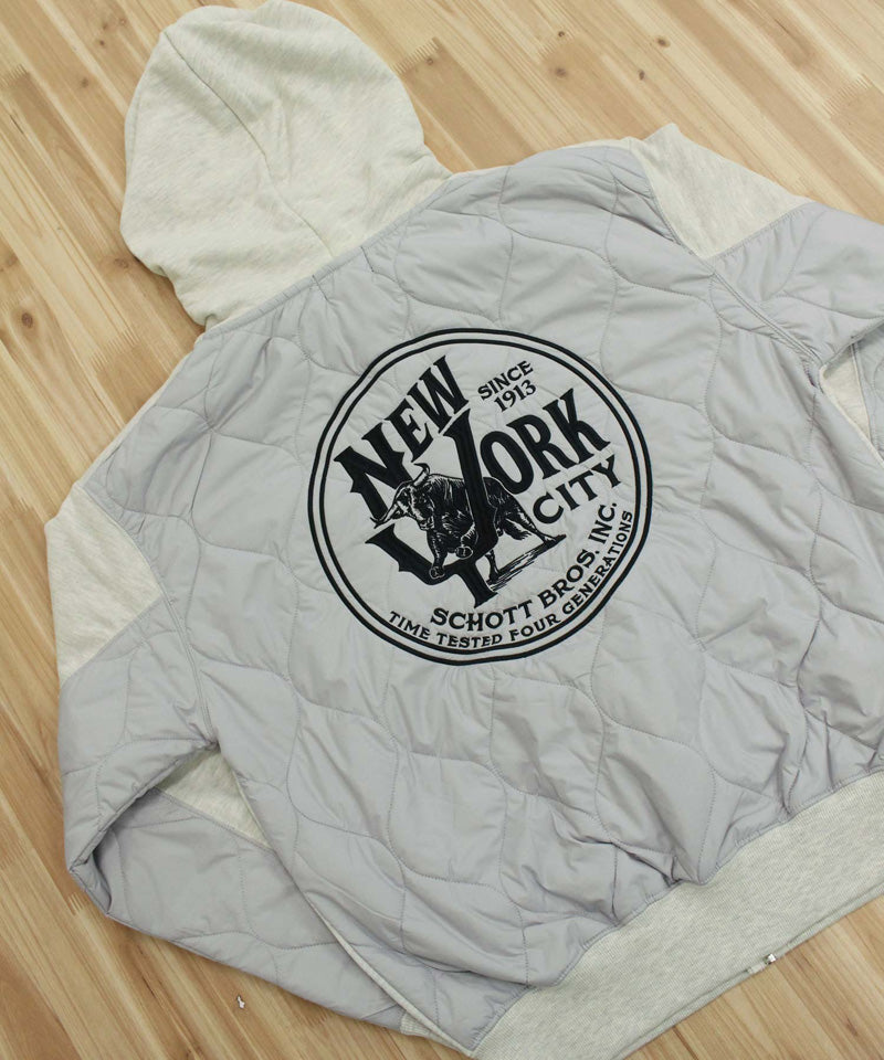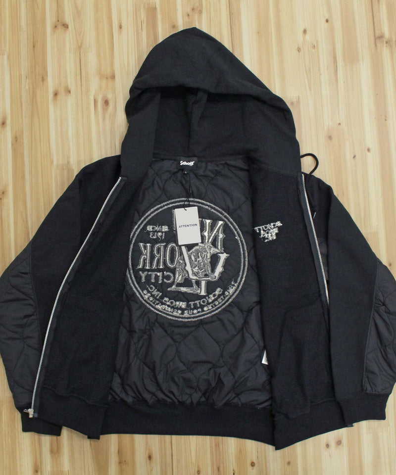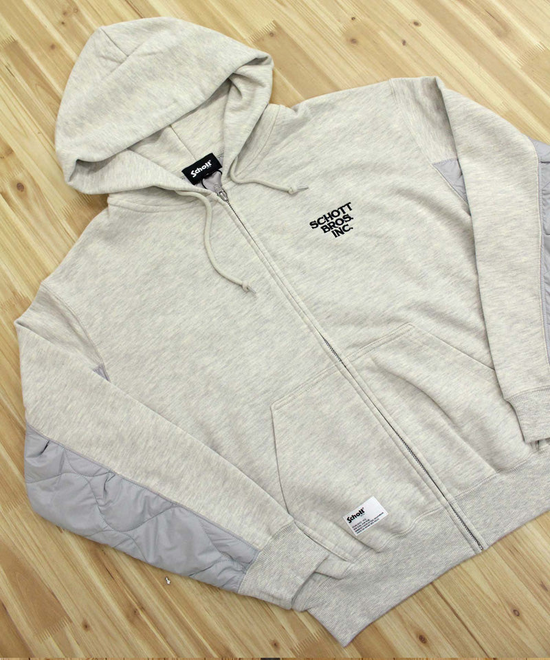 QUILTED COMBI. ZIP HOODED/キルティング コンビ ジップパーカー/Schott/ショット