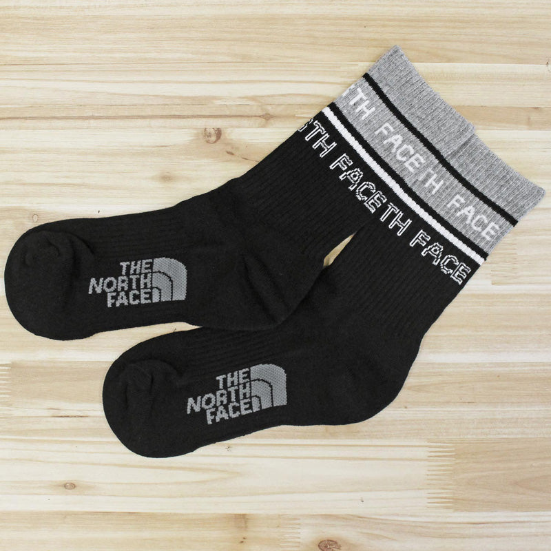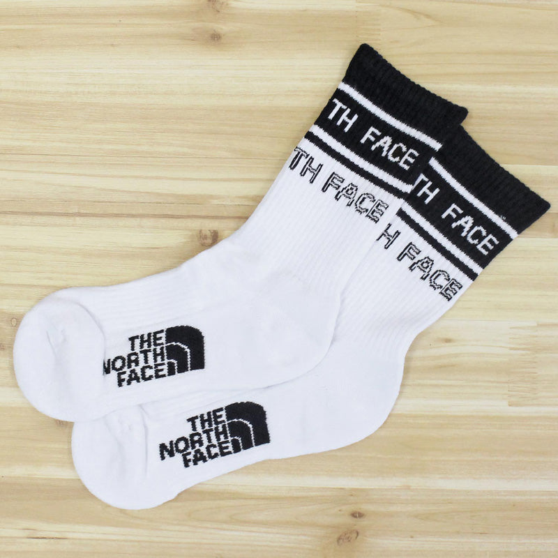 履き口にロゴを2段に並べたラインデザインMIDカットソックス。