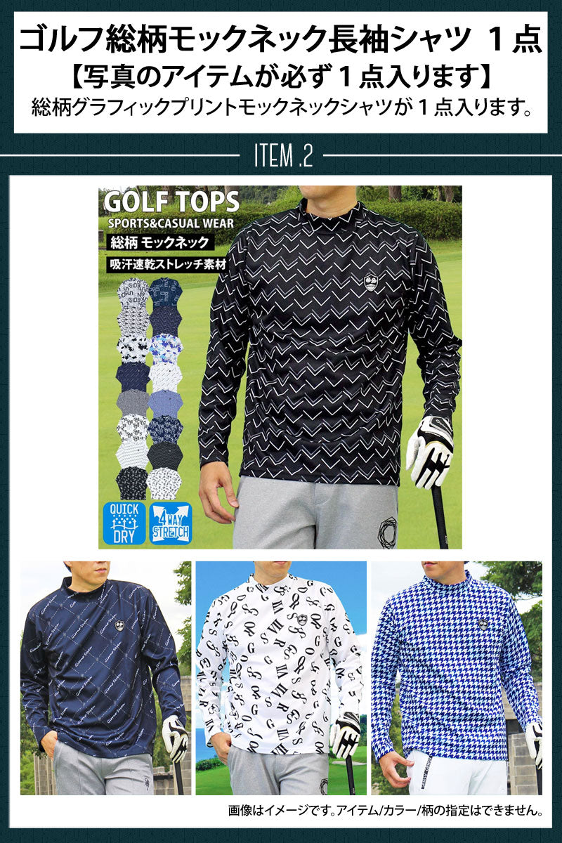 ・ゴルフ総柄モックネック長袖シャツ 1点