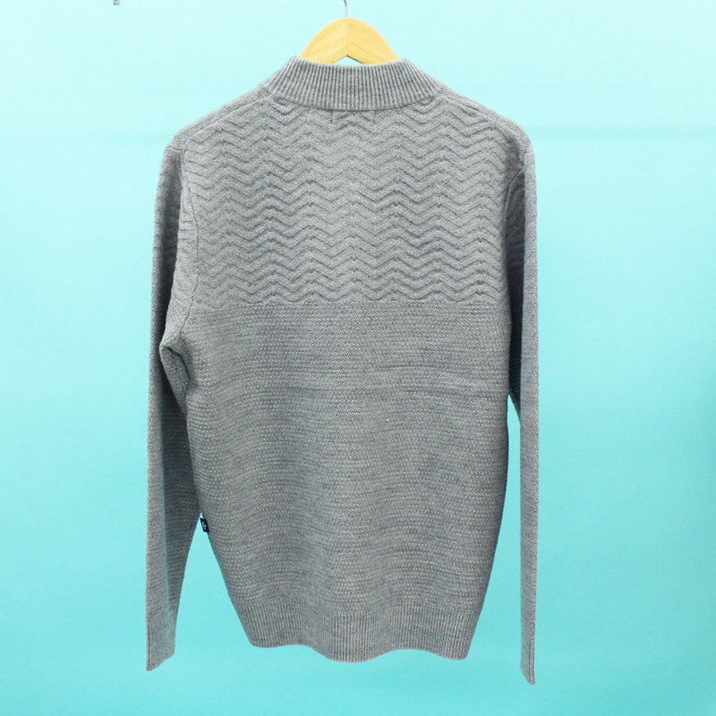 凹凸のあるへリンボン編みで切り替えた表情あるニット。