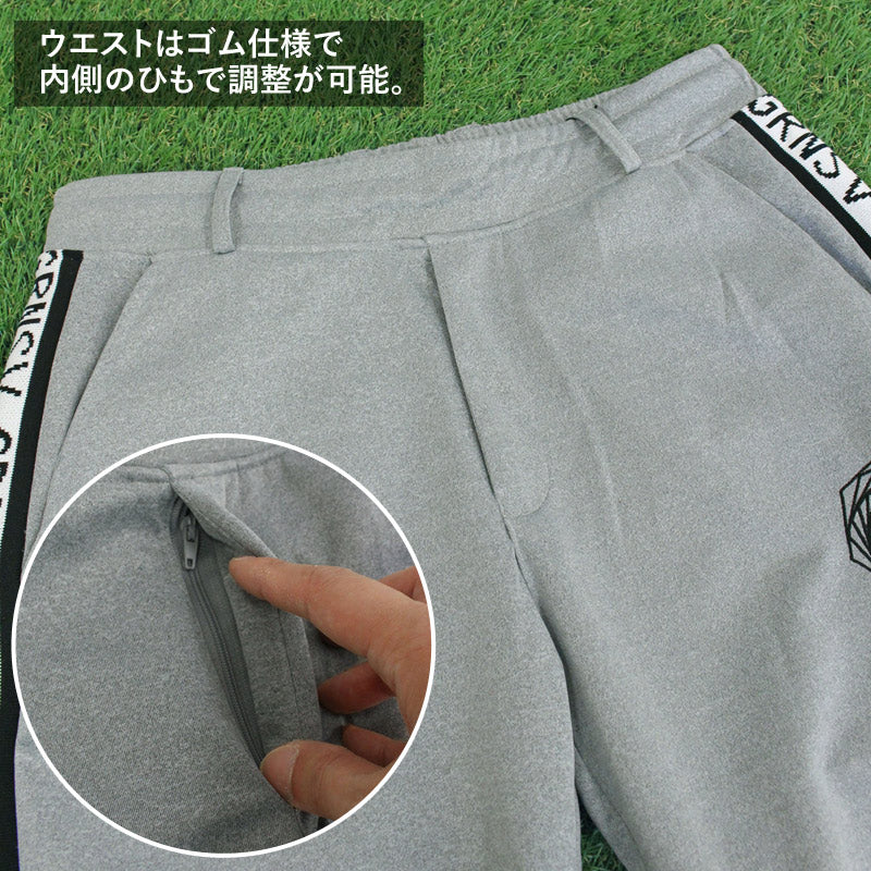 サイドロゴリブラインデザインのゴルフハーフパンツ。