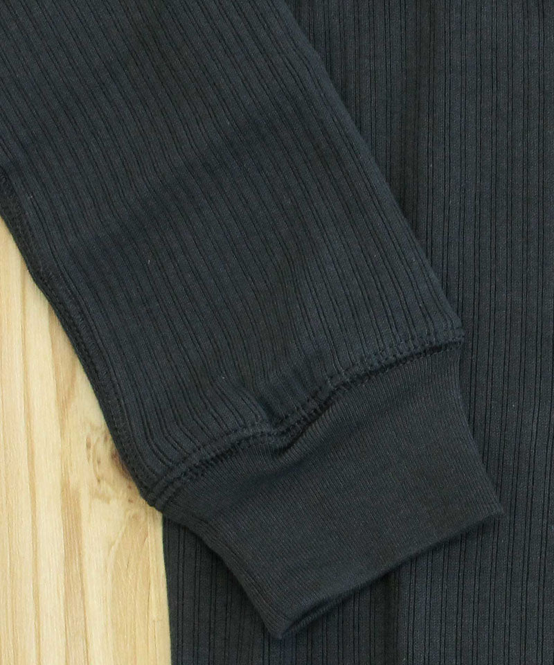 しっかりとした厚みがありながらも柔らかな着心地のリブ編みコットンヘンリーネックロンT。