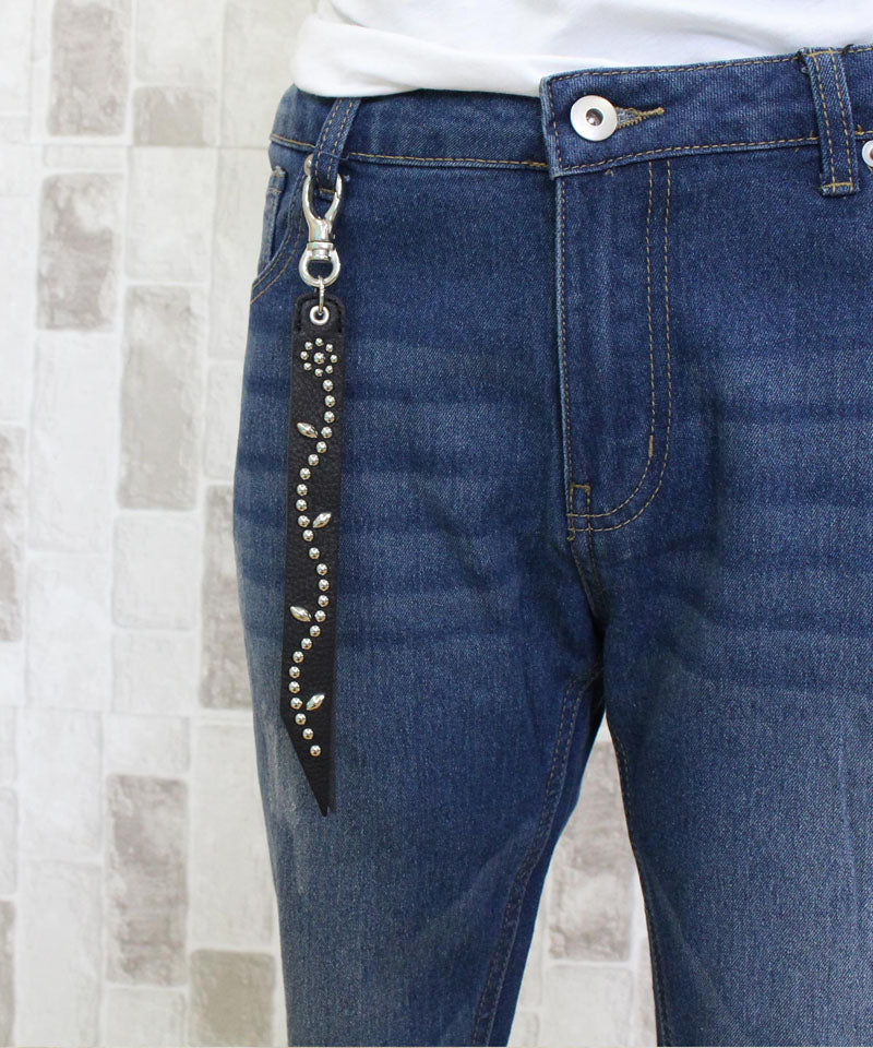 お手持ちのキーリングにつけて使えるレザースタッズキーホルダー。